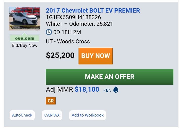 Що далі очікувати від ринку вживаних Chevrolet Bolt EV?Ринок вже починає реагувати зростанням цін на всі модельні роки. От і приклад, при оціночній вартості в $18.000 продавець просить за вживане авто 2017 року – $25.000.